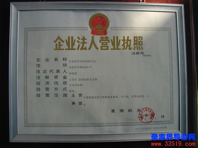 湖南省財政(xi角n)廳信托投資總公司在張家(ch見n)界設立的旅行社:一流國際社踇團,品質有保