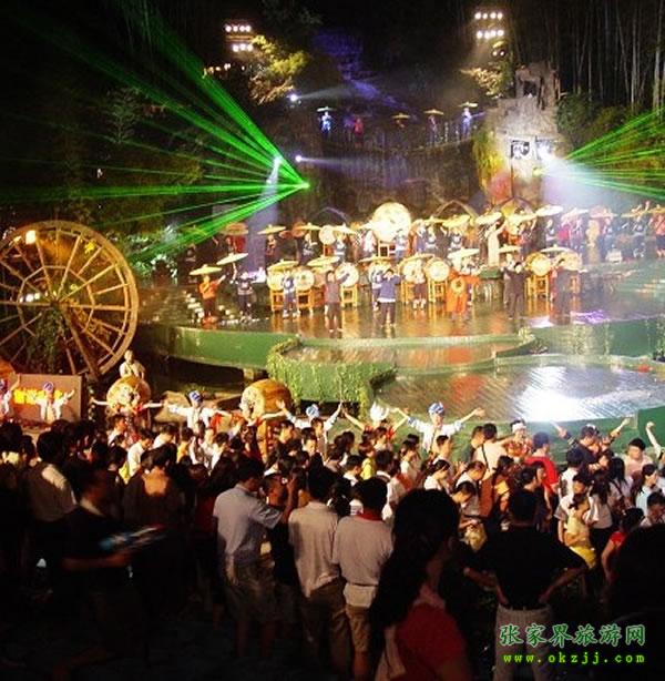 《武陵魂•梯瑪神歌》是一場記述土家族起源、演變、戰(zhàn)爭、生產(chǎn)生活等內(nèi)容的大型立體山水實景演出,揉合了音樂、舞蹈、文學(xué)等多種藝術(shù)形式,如幻如夢的舞美燈光,搖曳生姿的原生態(tài)歌舞……濃縮了土家族數(shù)千年的發(fā)展歷史,400多名演員以自然淳樸的表演充分的展示了土家的民族文化特征,給游客帶來了耳目一新的感受。一場視聽的饕餮盛宴,一曲驚天地、泣鬼神的曠世古歌,給人山水文化光影視聽的享受?!境銎罚?a class="insidelink" target="_blank" title="張家界">張家界梯瑪神歌文化傳播有限公司】