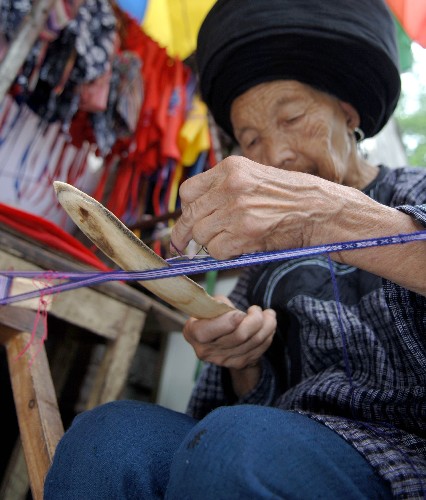 織花帶,據(jù)有關(guān)史書記載:“南蠻斷發(fā)紋身,以示與龍蛇同類,免其傷害。”原來,苗家姑娘織花帶是為了防蛇傷身,所織花帶以假亂真,其花紋形同蛇樣,使蛇誤認(rèn)為是同類,使人不受其害。怪不得本書作者在苗家做客時(shí),曾聽到一個(gè)美好的傳說:在古代,因居住在苗嶺山區(qū)的人經(jīng)常遭受毒蛇的傷害,便有一個(gè)美麗聰明的姑娘想出了一個(gè)辦法,她見蛇遇同類便迅速離開,就仿照蛇的花紋編織了約一寸寬的一種花帶。這種花帶平時(shí)上山纏在身上,如遇毒蛇就取下花帶對(duì)蛇一擺弄,這樣毒蛇見了以為是同類,便迅速離開了。這個(gè)辦法很靈,使許多苗家人免受了傷害。自那以后,苗族織花帶也就一代一代傳下來了。苗族花帶經(jīng)代代相傳,越織越快,越織越美,它由原來單一的為了防止蛇傷發(fā)展到現(xiàn)在的多種用途,如作為青年戀愛的信物,饋贈(zèng)親友的禮品,也用于提包的背帶和一部分家具的裝飾等等?;◣У膱D案紋樣也越來越豐富了,有表現(xiàn)吉祥與愛情生活的,如《雙喜臨門》、《五谷豐登》、《鴛鴦戲水》等,也有表現(xiàn)花卉的,如《秋菊》、《蘭草》等等。苗族姑娘編織花帶的工藝也有進(jìn)步,以前織一根花帶,要幾天,現(xiàn)在,只見她們手拿一根牛骨針(也有用銅針與銀針的),如流星閃爍一般,揮針走線,一根一米長(zhǎng)的花帶很快就織成了。 苗族同胞特別好客,他們很講禮貌,重感情、守諾言,待人誠(chéng)懇、憨厚樸實(shí),不虛偽。他們歷來主持正義,扶正斥邪,路見不平,撥刀相助、赴湯蹈火,在所不辭。