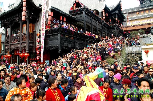如遇天干蟲荒,便打醮求神,邊舞龍燈邊潑水,祈求龍王爺降雨。舊社會(huì)許多村寨都建土地廟,五谷廟,人們經(jīng)常來這些小廟里燒香敬神,祈求最神明保佑人畜平安,五谷豐登。 土家族平常也有忌諱,但是多的忌諱就是在春節(jié)前后這一段。比如,古歷臘月二十四日過小年以后,不準(zhǔn)在房前屋后挖土,認(rèn)為這時(shí)動(dòng)土不吉利。到了三十晚上這一天,又亂挖亂好,于是家家戶戶起陽溝,打掃衛(wèi)生,搞得干干凈凈好過年。 二十四日還要敬灶神。吃團(tuán)年飯時(shí)先要敬祖宗,擺肉擺酒,燒香紙,磕頭作揖。團(tuán)年飯除暈菜外,還要配青菜與白菜,吃青菜,取它的諧音“清泰平安”,吃白菜同樣是取它的諧音“百事順利”等等。吃年飯時(shí)半夜起床辦飯,天不亮就開始吃,說是頭吃頭亮。吃飯不能泡湯,否則會(huì)垮田 勘 。過年只能講吉利話,不能說病、死等一些不吉利的字眼。 大年初一,家家貼上對(duì)聯(lián):“出門大吉,對(duì)吾生財(cái)”。還有“初一不出門,初二拜丈人”的規(guī)矩。如出遠(yuǎn)門,還要請(qǐng)人看日子,說是“七不出門八不歸,初九出門空手回。”出門時(shí)看見喜鵲是好事,看見烏鴉不吉利。挑擔(dān)子的扁擔(dān)婦女不能從上面過,否則也會(huì)認(rèn)為背時(shí),洗澡分大小腳盆,男人洗大的,婦女只能洗小的。婦女懷孕以后,家里東西不能隨便搬動(dòng),房前屋后不能隨便動(dòng)土,墻上和板壁上不能釘釘子,也不能用刀剁門坎,等等,說是違反了這些規(guī)矩會(huì)造成孕婦流產(chǎn)。 如家里人在外面兇死(如被殺、摔死、打死等)的尸體不能抬進(jìn)屋,因“紅頭老千”進(jìn)屋,子孫會(huì)兇多吉少。而且也不能同病死、老死的人埋在一起,應(yīng)單獨(dú)安葬。以上一些信仰與忌諱隨著科學(xué)文化知識(shí)的提高,現(xiàn)在已越來越少了。