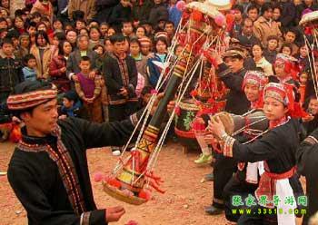 “趕秋”節(jié)的來歷是這樣的:相傳是有一個(gè)英武善射的苗族青年,名叫巴貴達(dá)慧。這一天,他出外打獵,見天空有一只雄鷹,便舉手一箭,箭起鷹落了。他去拾鷹,不料卻是一只繡花鞋,他想找這個(gè)拋秀花鞋的姑娘,可就是找不到人,沒辦法,他便設(shè)計(jì)了一種大秋千,同時(shí)可坐八人打秋千玩耍,取名“八人秋”。“立秋”這一天,他就邀請(qǐng)大家來打秋千。不料,就在打秋千時(shí)無意找到了拋繡花鞋的姑娘,她名叫黛帕。他們一見信物(那只繡花鞋),便彼此產(chǎn)生了愛戀之情。他們通過對(duì)歌形式,青年男女要尋找自己的心上人,便都來“趕秋”。這樣,苗族的趕秋節(jié)也就慢慢傳開了,而且越趕越熱鬧,越紅火。