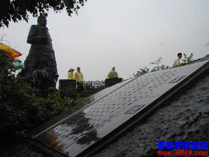 (屈子行吟)在武陵源民間流傳的歷史人物中,除了赤松子、秦始皇、張良、向王天子等,還有一個屈原。一腔愛國熱血的屈原受奸臣誹謗、打擊,先后被放逐漢北、江南。屈原流放江南期間,據(jù)說曾到過澧水,這在他的詩作中多次得到體現(xiàn)。如“捐余袂兮江中,遺余佩兮澧浦”。說來奇怪,屈原的形象居然在天子山被發(fā)現(xiàn)。你們看,那座30多米高的石峰,峨冠博帶,清瘦如人狀,長長青衫在風中抖動,他反背雙手,踱步遠方,似行吟澤畔,似引吭悲歌,好一幅憂國憂民的儀態(tài)。這就是天子山著名景點--屈子行吟。