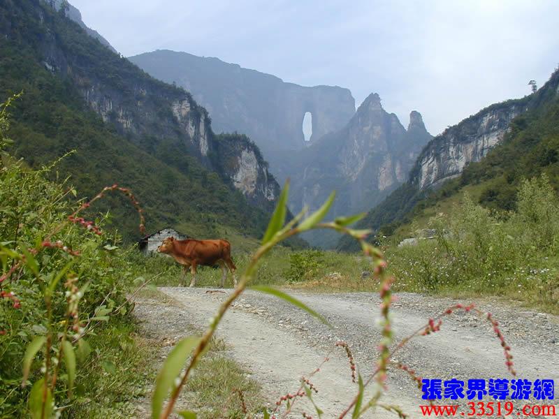 (天門洞)在天門山1264米高的絕壁之上,生出一個南北洞穿的天然門洞,洞底至洞頂131.5米,寬37米,縱深30米。洞北面頂部邊緣,有倒垂的龍頭竹,它的根像龍頭,樹葉像鳳尾,因此又叫鳳尾竹。東側是高約200多米的溝槽,有泉水從上面飄散,落下點點梅花雨。據(jù)說誰能張口接下48滴梅花雨,便可羽化成仙。天門洞口,經常能看到巖燕飛舞,山鷹盤旋。隨著天氣的變化,天門洞有時候吞云吐霧,有時候明朗似鏡,構成循環(huán)往復、瞬息萬變的氣象景觀。