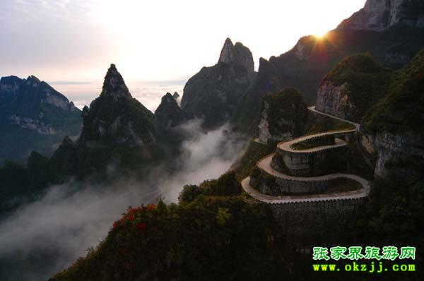 早上8:00長沙火車站集合后,經(jīng)長張高速往張家界市,赴天門山國家森林公園旅游,乘坐“世界第一長高山客運(yùn)索道(全長7455米,高差1279米)”, 體驗(yàn)騰云飛翔的刺激震撼,28分鐘到天門山頂:登張家界之巔云夢仙頂,俯瞰張家界全景,體驗(yàn)凌空獨(dú)尊的豪情, 游覽東線碧野瑤臺景區(qū),觀賞奇妙美麗的盆景花園,游覽盆景石區(qū)、天門翻水、北俯視天門、靈泉、靈泉院,登云夢仙頂,體驗(yàn)“云生腳下、奇峰盡覽、萬象目中”的豪邁感覺。游西線體驗(yàn)鬼谷棧道的驚心動魄,在峭壁云端縱情尖叫。返凌霄臺欣賞城區(qū)風(fēng)光、領(lǐng)略山水長卷的磅礴氣勢,攀登 999 級臺階的上天梯,抵達(dá)天門洞底,感受造化神奇,盡情欣賞天門洞內(nèi)外的壯麗景色。至天門洞體驗(yàn)自然造化的神奇和震撼沖擊。乘觀光汽車體驗(yàn)99彎通天大道奇絕,沿途觀賞七級瀑布、金龜馱元寶、將軍峰、箭桿峰等景觀,天門山氣象獨(dú)特,門洞奇絕,植被豐富,歷史悠久,是歷史文化與佛道文化的神秘載體,是自然景觀與人文景觀的完美結(jié)合,故也是蜜月度假必游之地。