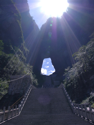 洞,這一大自然的造物杰作,嵌于千米絕壁之上,如明鏡高懸,似天門獨(dú)啟,一年四季吐納云霧雷電,充滿著天宮帝閣的神秘感,其真正的形成原因至今還沒有令人信服的科學(xué)解釋.