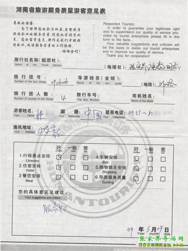 - 6月25日福建邵先生一行12人質(zhì)量反饋單
