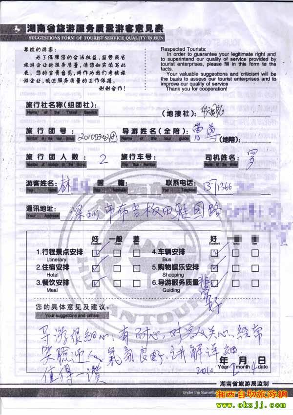 2010年2月4號(hào)林小姐一行兩位旅游質(zhì)量反饋