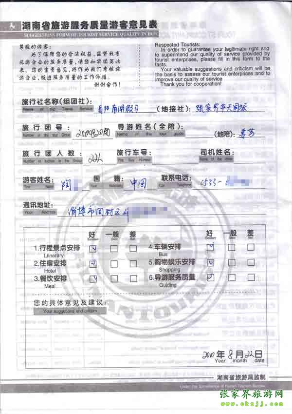 2010年8月22日陶先生一行22位旅游質量反饋