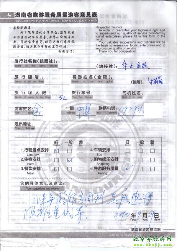 - 游客夏先生為表揚導(dǎo)游李姣姣寫來表揚信致我張家界... [14811]