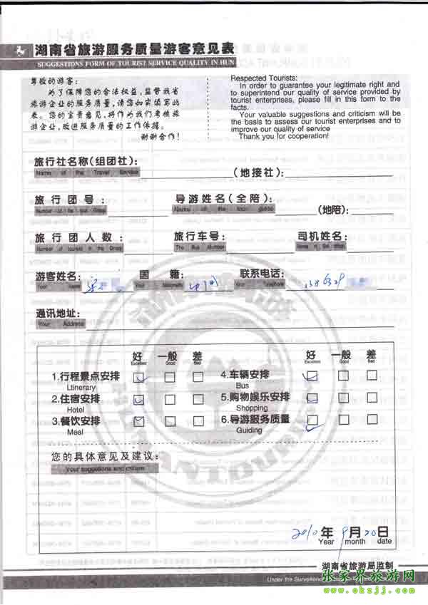 2010年9月20日宋小姐旅游質(zhì)量反饋