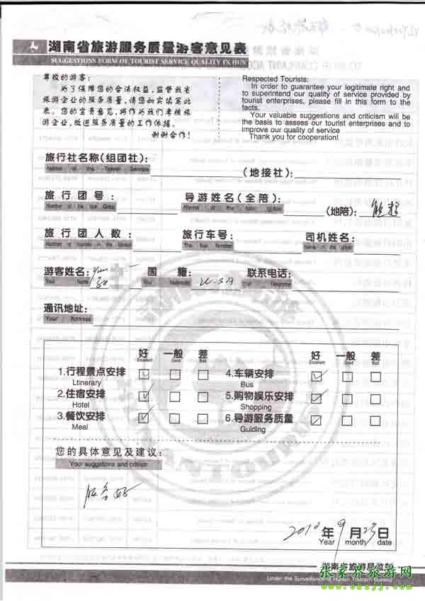 - 游客夏先生為表揚導(dǎo)游李姣姣寫來表揚信致我張家界... [14811]