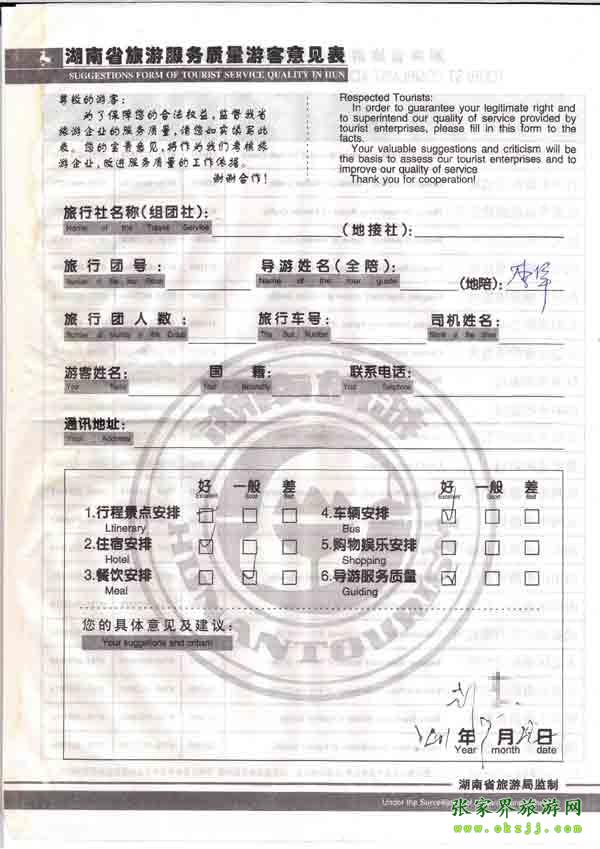 - 游客夏先生為表?yè)P(yáng)導(dǎo)游李姣姣寫(xiě)來(lái)表?yè)P(yáng)信致我張家界... [14811]