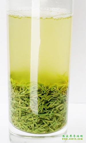 “天崇毛尖”的特點是:條索緊結(jié),圓渾彎曲,苗鋒顯露,披滿銀毫,色澤翠綠,清香濃郁,味清醇甘,葉底均勻,飲后有提神醒腦的功能。這種茶在制作時要經(jīng)過殺青、初揉、復(fù)炒、初烘、整形、攤涼、干果、包裝等八道工序。現(xiàn)在,這種名茶已在永定區(qū)成批生產(chǎn),游人可以任意選購。