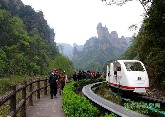 在十里畫廊盡頭。這里怪石嶙峋,林木蔥籠,常有三五成群成百上千只猴子在此會集,故稱猴子坡。游人至此,或樹叢之中,或山間古道,常見群猴在懸崖絕壁上攀援嬉戲,有的盲目在藤蔓上攀跳,有的獨(dú)坐巖石抓耳搔腮。惹得游人眉開眼笑,興味無窮。 從南天門向?qū)γ嫱?,可見三座瘦削石峰,形如美女,婷婷玉立,故?ldquo;三女峰”。三女峰尤以第三峰奇妙,于石峰胸部有一直徑約1米乳眼, 由孔中可窺山后天光,既像高懸在石壁上的明鏡,又像少女佩帶著一枚晶瑩透明的玉飾。 過南天門繼續(xù)登山約200注,有一岔道口,叫月亮埡, 往右便是天子山石家檐景區(qū),向右斜上則通天臺。天臺海拔1020米,有東西兩個觀景臺。東臺為一懸空巨石,四周雜樹叢生,古松倒掛,是觀日出的理想之所。西臺俯視西海最妙,但見幽深莫測的峽谷中,千峰聳立,戴翠披綠,秀麗的景色盡覽眼底。 十里畫廊觀光小火車票價:單程30元/ 人,雙程40元/人。優(yōu)惠門票價格單、雙程由現(xiàn)行每人次14元和19元調(diào)整為18元和24元。 優(yōu)惠政策規(guī)定:根據(jù)有關(guān)文件規(guī)定,十里畫廊觀光電車門票價格對身高不足1.2米的兒童實(shí)行免費(fèi);對身高1.2米至1.5米的未成年人實(shí)行優(yōu)惠;對24歲以下學(xué)生憑學(xué)生證享受優(yōu)惠;符合《殘疾人實(shí)用評定標(biāo)準(zhǔn)》的殘疾人、60周歲以上老人、現(xiàn)役軍人、烈士直系家屬、持有民政部門頒發(fā)的《城鄉(xiāng)居民最低生活保障金領(lǐng)取證》的人員憑有效證件享受優(yōu)惠;此外可在特定日期對特定群體(如教師節(jié)對教師、建軍節(jié)對軍人等)實(shí)行減免優(yōu)惠。 湖南唯一一家全國百強(qiáng)國際旅行社、湖南五星級旅行社:華天國際旅行社 品牌卓著,信譽(yù)度高,是游客理想選擇接待單位。