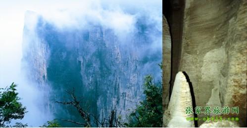 ![]() 在天門(mén)山的峭壁上,有一個(gè)方形洞口,即為天門(mén)山十六洞里最為著名的鬼谷洞.這個(gè)洞上距山頂百米,下臨深淵萬(wàn)丈,地勢(shì)險(xiǎn)峻,因鬼谷先師曾經(jīng)在此隱居修煉而得名.在“天門(mén)十景”里,鬼谷洞以“玄壁隱仙”著稱(chēng).