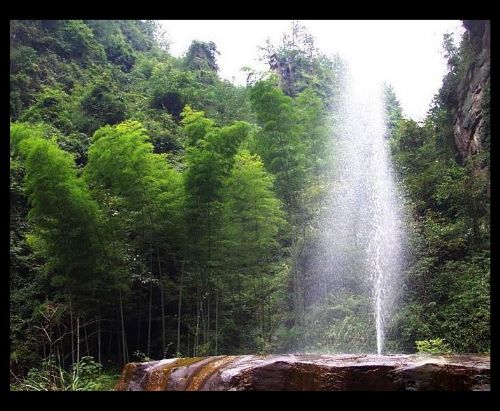 在金鞭溪游覽過(guò)程中,可見(jiàn)一組奇峰,有兩座較高的石峰緊密相連,下半截連為一體,上半截一高一矮,高者略欠身,低者稍后仰,好一幅相愛(ài)擁抱的絕妙畫面,恰似一對(duì)久別重逢的夫妻,故名相會(huì)峰,亦稱千里相會(huì)。相傳東海龍宮小龍女常來(lái)此地觀賞風(fēng)景,一次偶然的機(jī)會(huì),結(jié)識(shí)了峨眉山遠(yuǎn)道而來(lái)的后生,二人情投意合,很快便產(chǎn)生了愛(ài)情。龍王知道此事以后,非常惱怒,決意拆散二人,多次將小龍女關(guān)在龍宮,但小龍女想方設(shè)法逃出來(lái),常常與情人相會(huì)。龍王一氣之下,將二人點(diǎn)化成石,便成石峰“千里相會(huì)”。 十一、茅巖河漂流